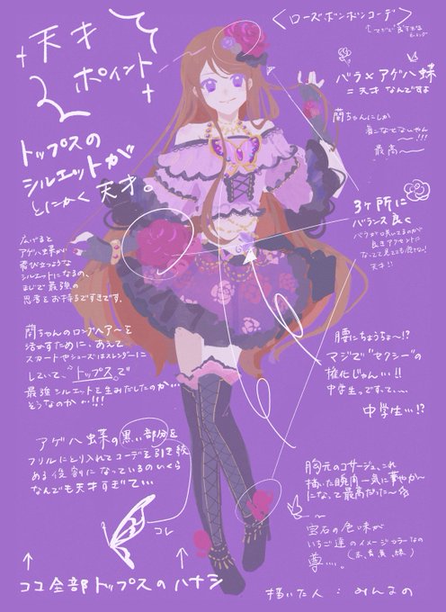 コーデ全身描いてると、「ゥワーッ!ここ天才だな!?」と思わずにはいられないポイントがたくさん出てきたので共有してみる 瀬名さんありがとう(そしてゴメンナサイ) #みんよののドレスここ好き