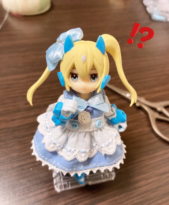 我が家にお迎えされたと思ったら即服着せられて突然モデルデビューすることに戸惑う弐織ちゃん可愛い。いや、迷彩着せたら似合いすぎててやばかってん。 何回整えてもギクシャクしてるの、ほんと可愛すぎた。 (その後バッチリお写真撮れた模様) #デスクトップアーミー #桃兎紅茶館お洋服