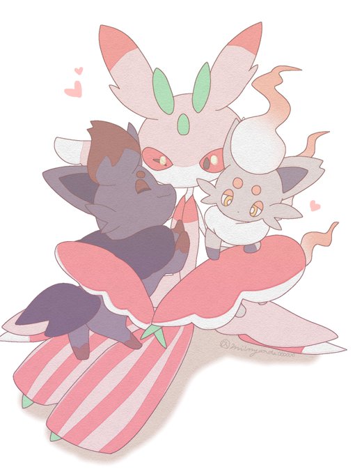 小さいけどパモパが一番力持ち。 #ポケモンイラスト #ニャニャとパモパとリムゥ