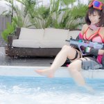 「うわうわ!?武蔵ちゃんまで水着になってるー!何その無駄に抜群なスタイル… しかも競泳水着だけでなく、ウェスタンスタイルまでフォローとかっ、これだから天然の天才は! 狙ってないのにあざとーい!…でも、そういうところがかっこいいんだよねぇ。えへ…」 水着 刑部姫/武蔵/FGO/cos/むさかべ
