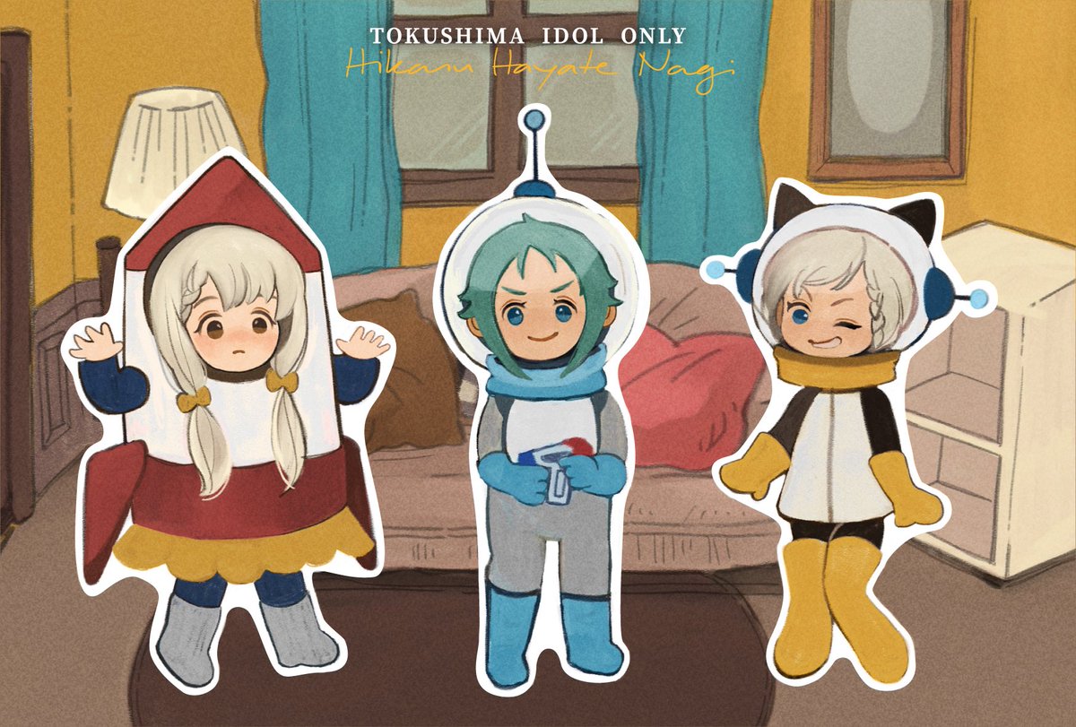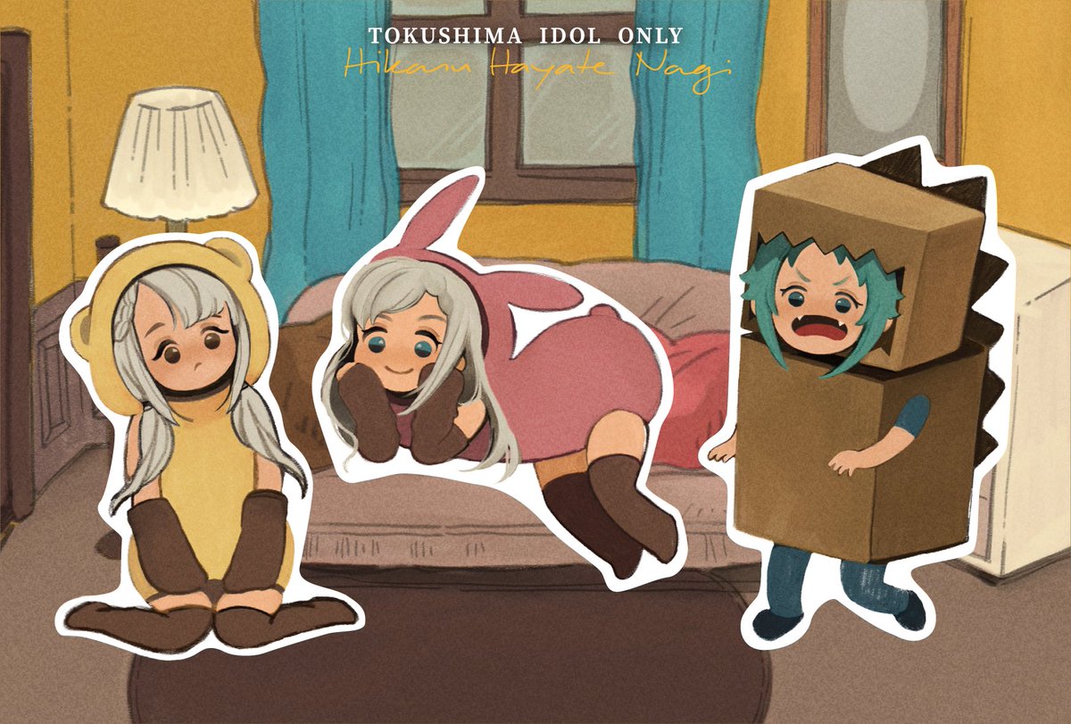 #徳島組おんりぃ 「サークルシールラリー企画」の 台紙とシールを描かせていただきました! 組み合わせは自由なので、お部屋で3人を遊ばせてみてくださいね〜☺️ twitter.com/heros_union/st…
