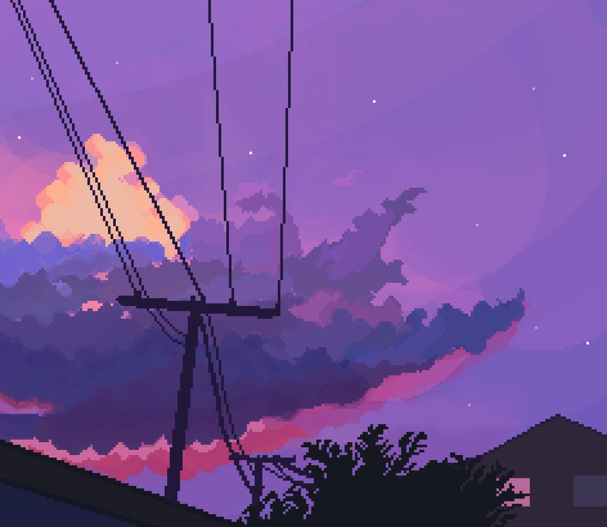 Sunset time Practicing on drawing clouds day 3 #pixel #pixelart #ドット絵