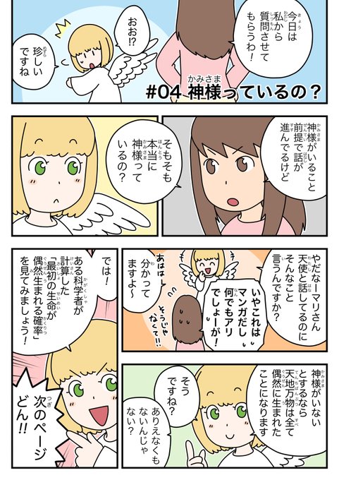 【ゆるく更新中】天使ちゃん聖書学習まんが 第4話「神様っているの?」 科学的な観点から、神様がいるのか考えてみる内容です☆ #漫画 #絵描きさんと繫がりたい #漫画が読めるハッシュタグ #学習まんが #聖書 #天使ちゃん漫画