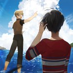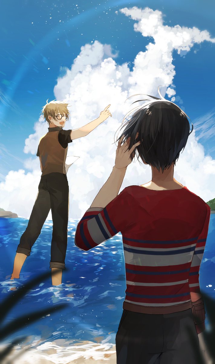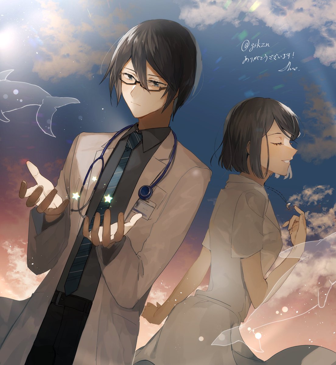 親愛なるかぜのさん@gskzn の美麗な線画を塗らせていただきました! 近くにいるのに遠い桜庭姉弟、そんな最初に拝見したときに受けた印象をだいじに抱きしめながら塗りました🐬