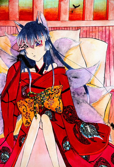 「十代目」 妖怪の大将というイメージで描きました。1代ずつ尾が増えていくという設定です。 #イラスト #アナログイラスト #アナログ絵 #オリジナルイラスト #私の絵柄が好みって人にフォローされたい #私の絵柄が性癖に刺さる人に届いてほしい