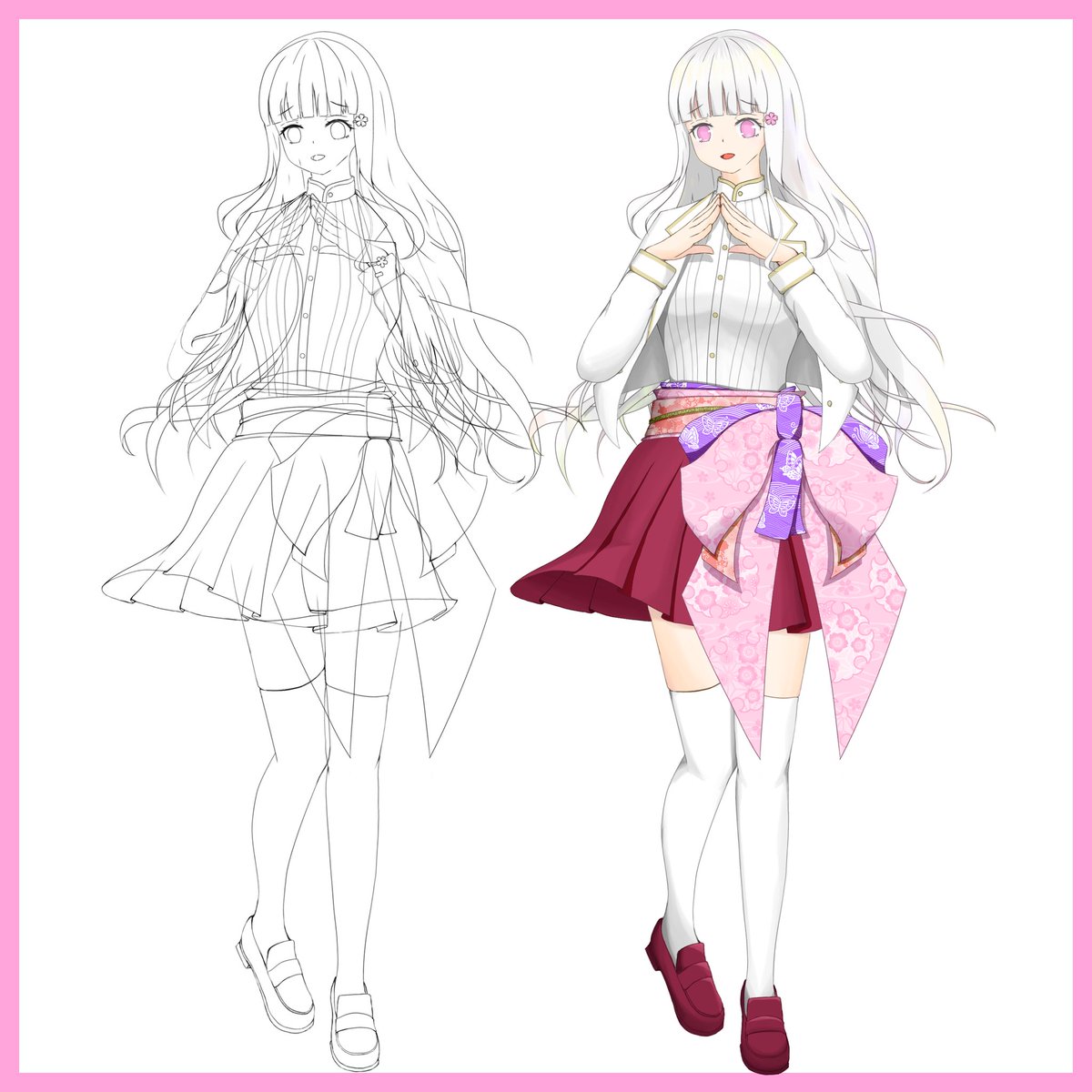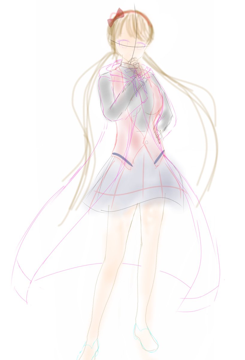 #このタグを見た人はラフ画とその完成絵を見せる 色塗った後も線画位置修正とかしてるから中間は正しくはないけど一応( ˘ω˘ )
