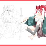 #皆さん線画と塗った後を見せてください 線画と完成後のあれ流行ってるから便乗 最近の卓で描いて頭がおかしくなりそうになった2人 最近何故か動かす前提で裏部分まで描いてる