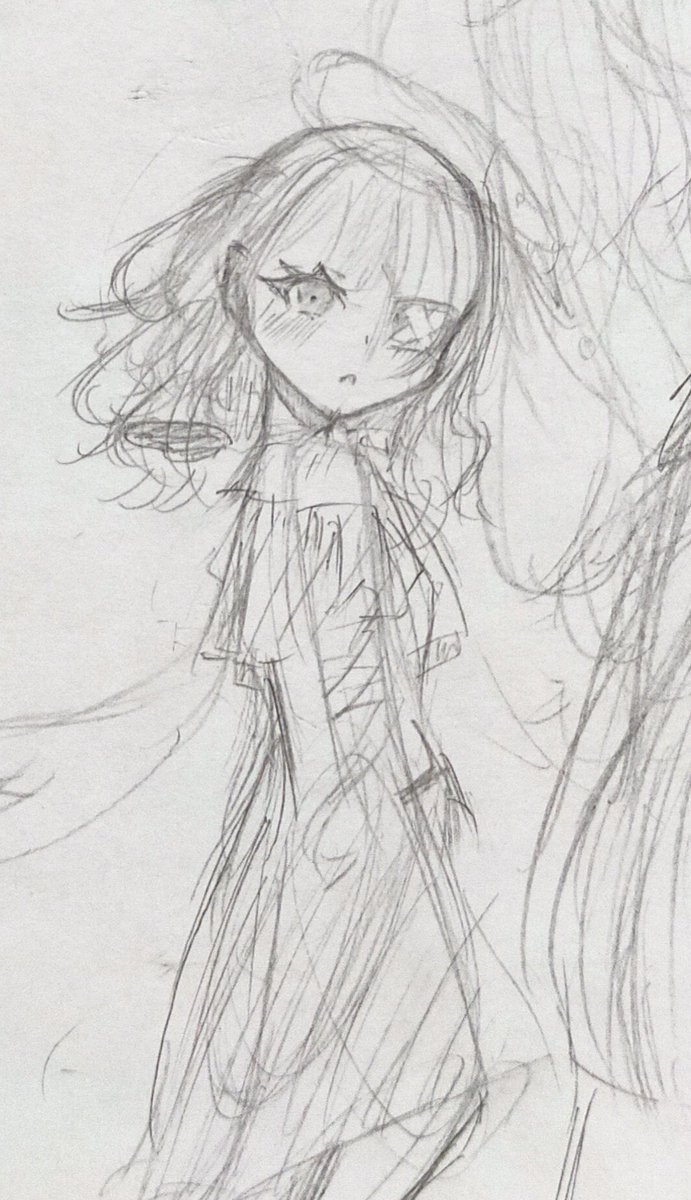 今デジタルで描いてるマイキャラの子!名前何にしようかな…… とりまデジタル頑張る💪('ω'💪) #イラスト #らくがき #天使 #堕天使