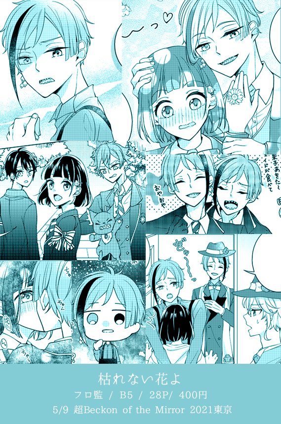 5 12 【5/9 超Beckon of the Mirror 2021東京】 新刊サンプル(1/2) フロ監♀ ⚠️顔ある喋る B5/28P/400円(会場頒布価格) 表紙デザインは天宮夏実様(@amamiya_natumi)にお願いしました! おしゃれ表紙を手に入れた😊✨✨ #twstプラス 21/03/30 20:42