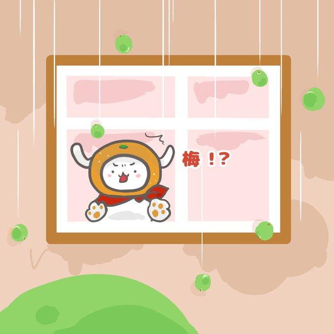 梅雨が降ってきたゾ~ #梅雨 #イラスト #梅 #みかんドッグ