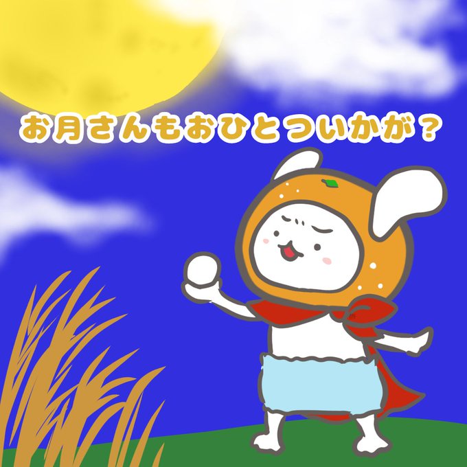 お団子おいしいですなぁ~🎑 おひとついかが? #中秋の名月 #イラスト #お月見 #一応ヒーローみかんドッグ