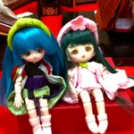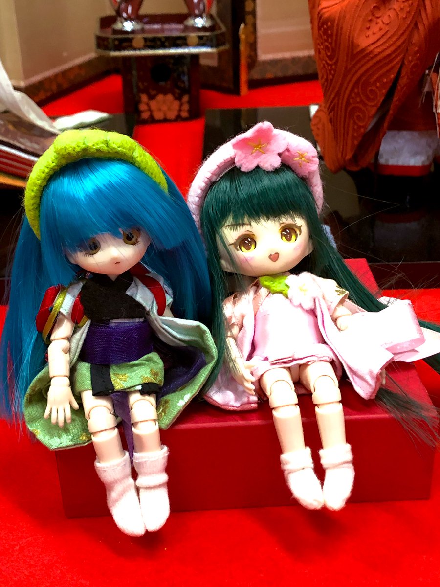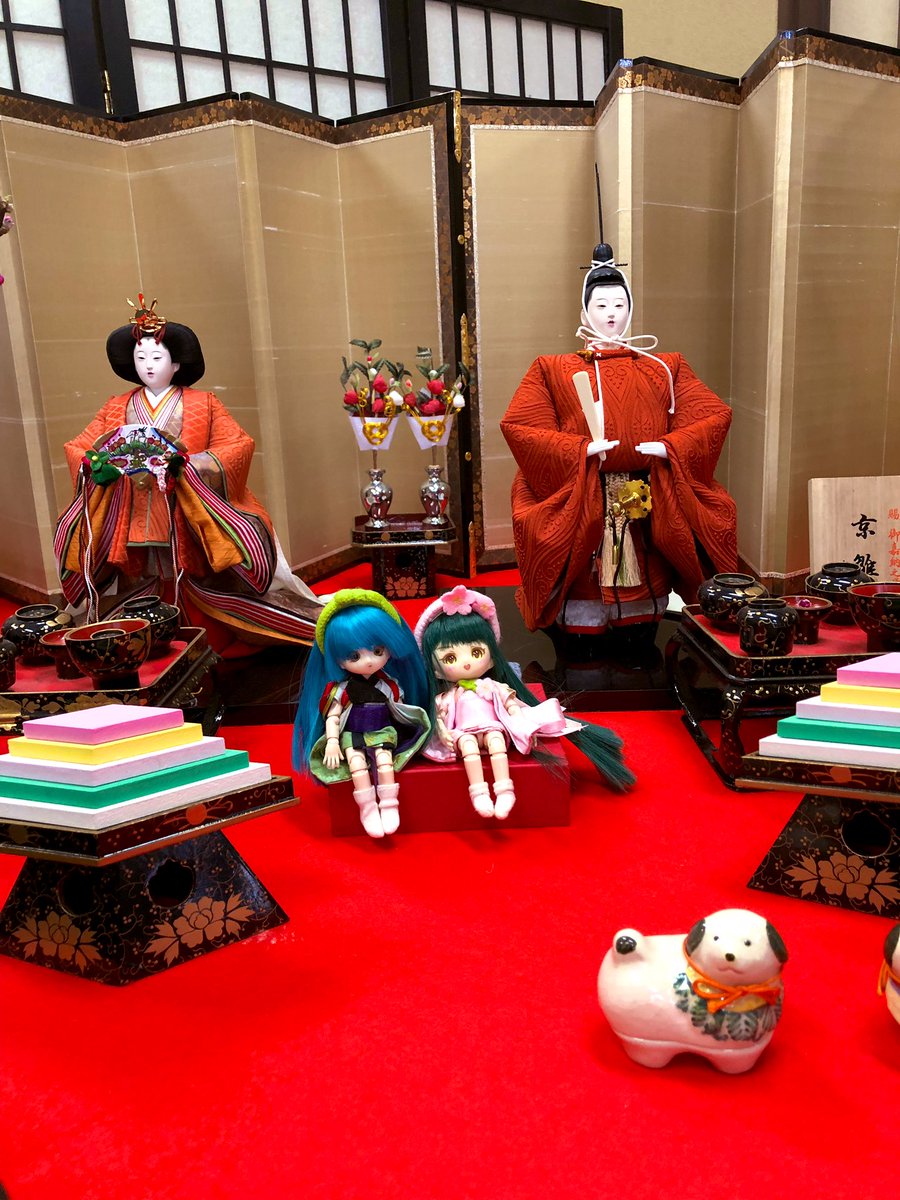 7 17 青峰堂さんの雛人形🎎と一緒にぷちずん子ず!立姿のお雛様は珍しいですね。とても素敵でした(*≧∀≦*) #ずん子スタンプラリー #青峰堂 19/03/02 18:15
