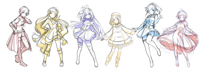 35 145 足とか即席で付け足したから汚いラフだけどこんな感じで好きな衣装で並べたいねー 22/10/09 19:36