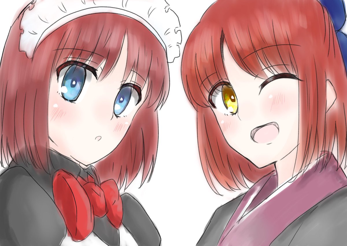 琥珀さん翡翠ちゃんお誕生日おめでと〜!なんか構図思い浮かばんかったからメルブラっぽくなってしまった… 今年のリメイク大いに期待してます!!! #ヒスコハ生誕祭2021