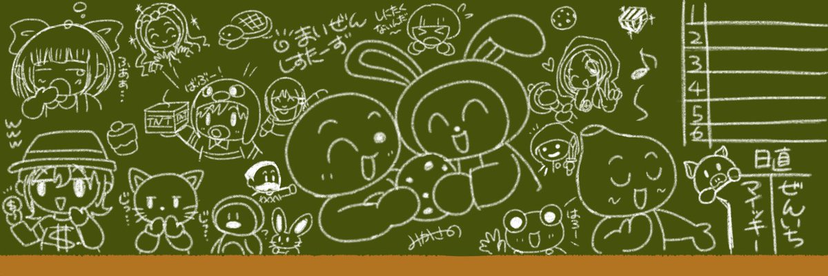 さっきの黒板風の落描きを描き直し+好きなキャラを足したらごちゃごちゃになった件w #まいぜんシスターズ #落描き