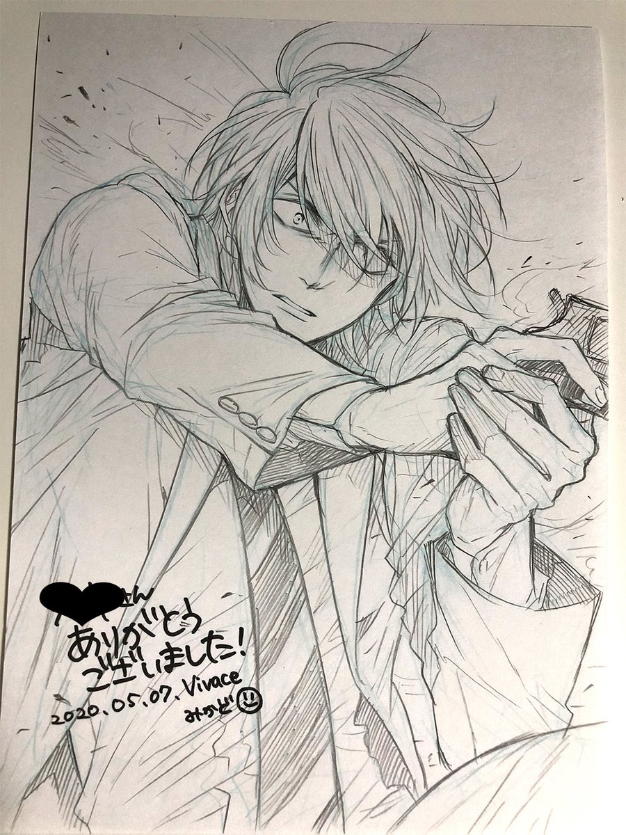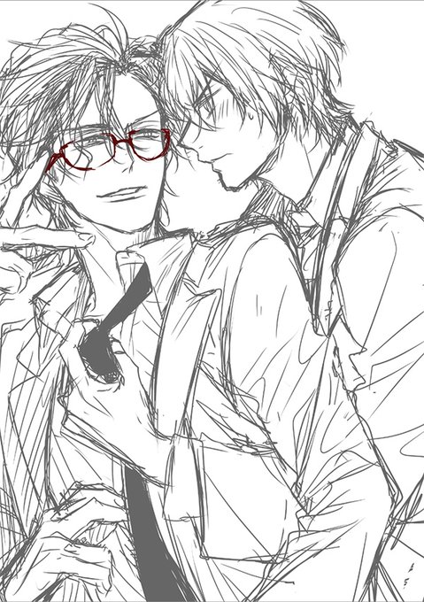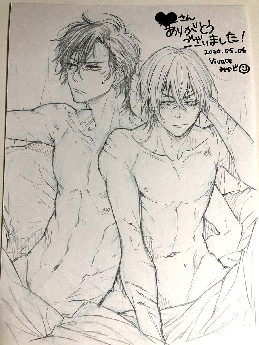 今年の4枚、あまり原稿以外で絵描けなかったなー! 来年も1冊位発行出来たらいいんですが…顔の可愛い攻め♡とうきうきで描いたページぺたり。