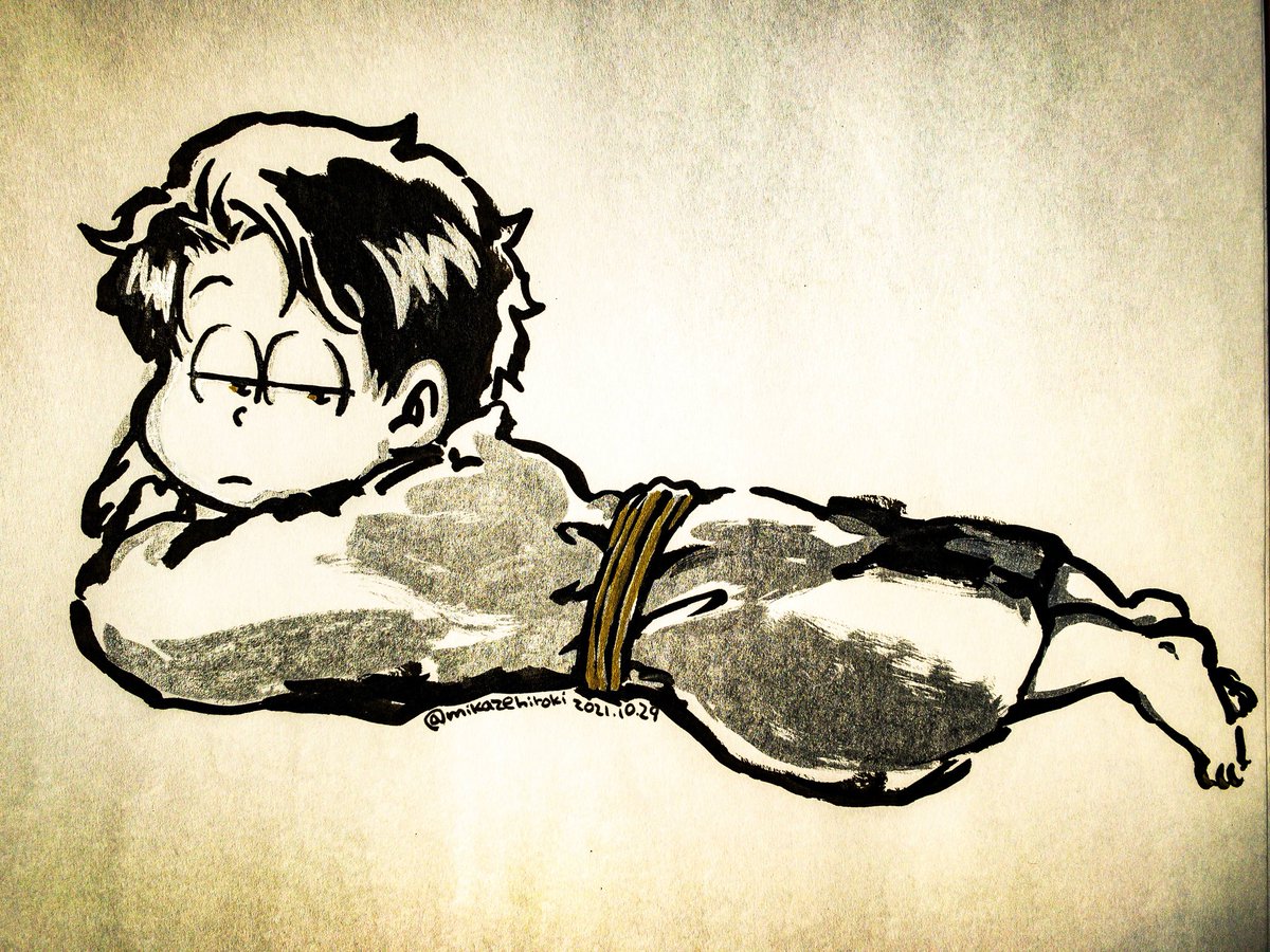 3 16 背中を伸ばしてオヤスミナサイ #インク松月間 #インク松月間2021 21/10/06 00:05