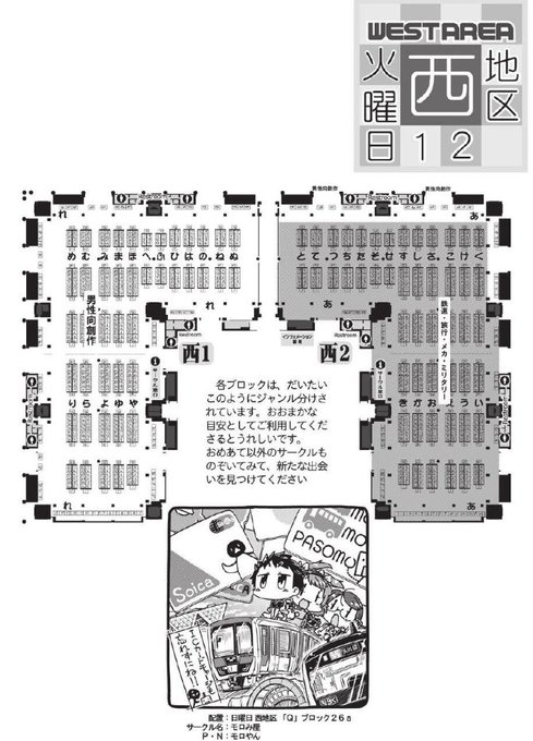 C98 4日目ジャンル配置① 西1:鉄道・旅行・メカミリ 西2:男性向け創作 #エアコミケ #エアC98遠征記 #一般参加 #一般参加者 #C98
