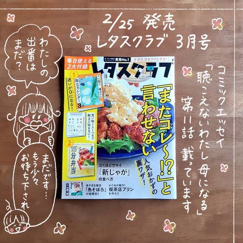 6/23発売のレタスクラブ7月号にて「聴こえないわたし 母になる」第15話が掲載されております。読んでいただけたら嬉しいです🥰 #レタスクラブ #コミックエッセイ