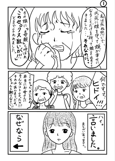 毒母:『娘に「このセ○クス狂いが!!!!!」と言われました』の、巻。 ※少し性的な描写があるので、苦手な方は見るのを控えてください。