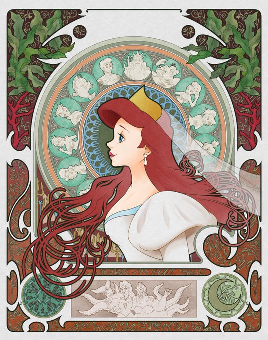 「もしディズニーキャラクターが名画のモデルだったら?」をテーマに名画オマージュファンアート描いてます。アルフォンス・ミュシャ様多め。 #作品をみてくださいあわよくばフォローしてください祭