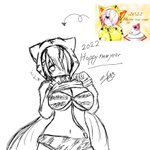 #今月描いた絵を晒そう だいぶおっぺぺを強調するようになってきたなぁと思い、3枚目は正月まだ強調出来なかった頃に描いた今年の干支を今描いたらというラクガキ。 今なら更に布面積を減らせる! いや、ファンアートやしw自重せなw