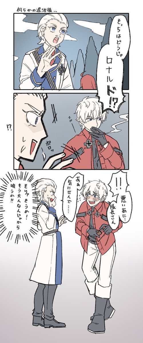 サーガ後に、何らかの退治で一緒になって初めて弟が煙草を吸っているところに遭遇してビックリして欲しい。ロナとヒヨ