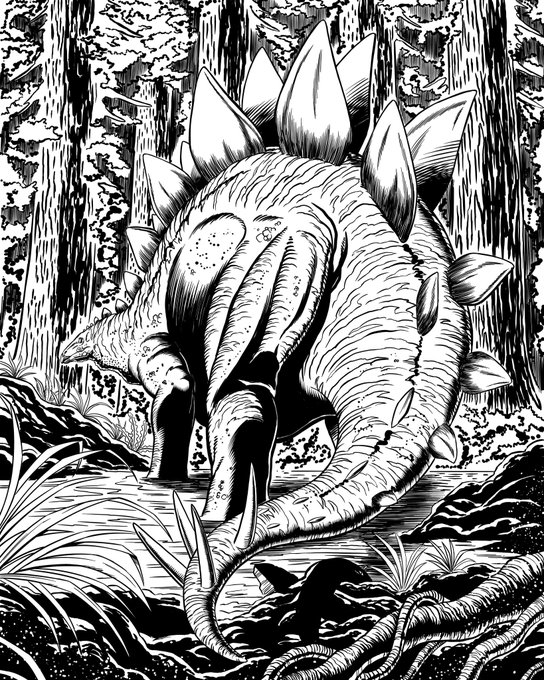 5 7 Finished the line work for this Stegosaurus piece. #paleoart #dinosaur 23/03/08 07:30