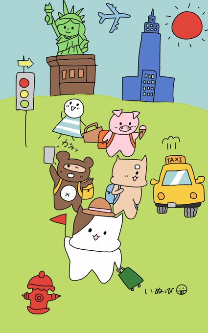 5 89 夏休みの旅行でアメリカ行きたいな〜🇺🇸 #4コマ漫画 #イラスト #ゆるいイラスト #ゆるいマンガ #猫 #ミケとポチ #アメリカ #旅行 23/07/12 21:41