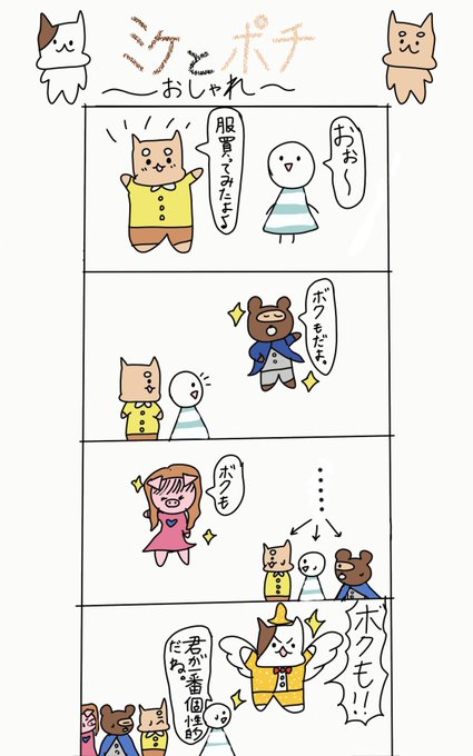 10 305 ポチの服、誰かに似ているような…?👓 #4コマ漫画 #イラスト #ゆるいマンガ #ゆるいイラスト #猫 #ミケとポチ #おしゃれ 23/04/04 21:40