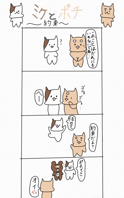 ポチのないしょ話、なんだろう❓ #4コマ漫画 #イラスト #ゆるいマンガ #ゆるいイラスト #ミケとポチ #猫 #ないしょ話