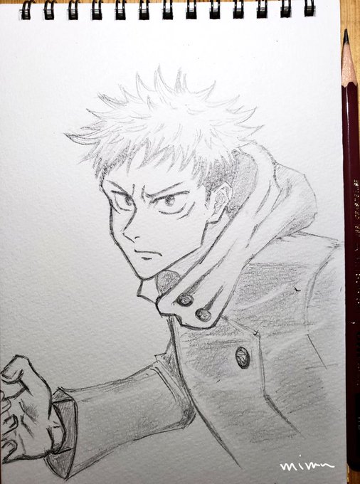 小学生の息子に 何か描いてと言われて 描いたシリーズ✍️ 虎杖悠二は学校に持って行くと言うから、イケメンアレンジはしなかった😂 夜中に急いで描いたから またちゃんと描いてあげないとね😘 #呪術廻戦ファンアート