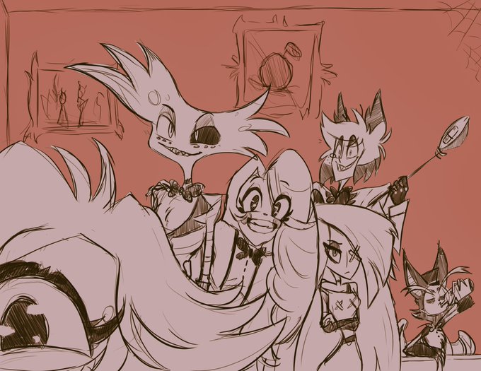 Все персонажи вместе. Мне нравится Хаск на заднем плане :D #HazbinHotel #HazbinHotelFanart