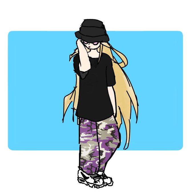 2 7 むぎにやってほしいストリートファッション ・バケットハット ・丸メガネ ・ビッグTシャツ ・カラー迷彩パンツ ・ゴツめの靴 #むぎあーと 20/08/29 06:07