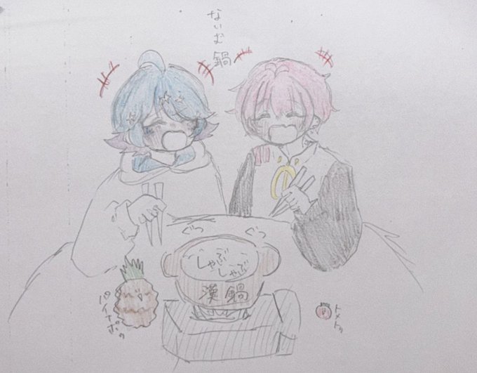 おつないむでした〜!! 激レアないむ鍋配信ありがとうございました!!🩷🩵 会話のテンポがコントで本当に面白かったです👊🏻 急いで描いたから結構雑です🙇♀️💦 #いれいすあーと
