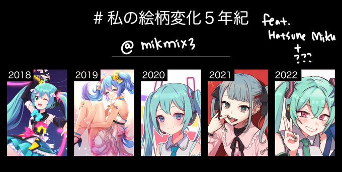 #私の絵柄変化5年紀 ミクさんだけ(?)でしてみました~ My art styles during five years, featuring only Miku(technically one is not Miku, but still)!! #HatsuneMiku