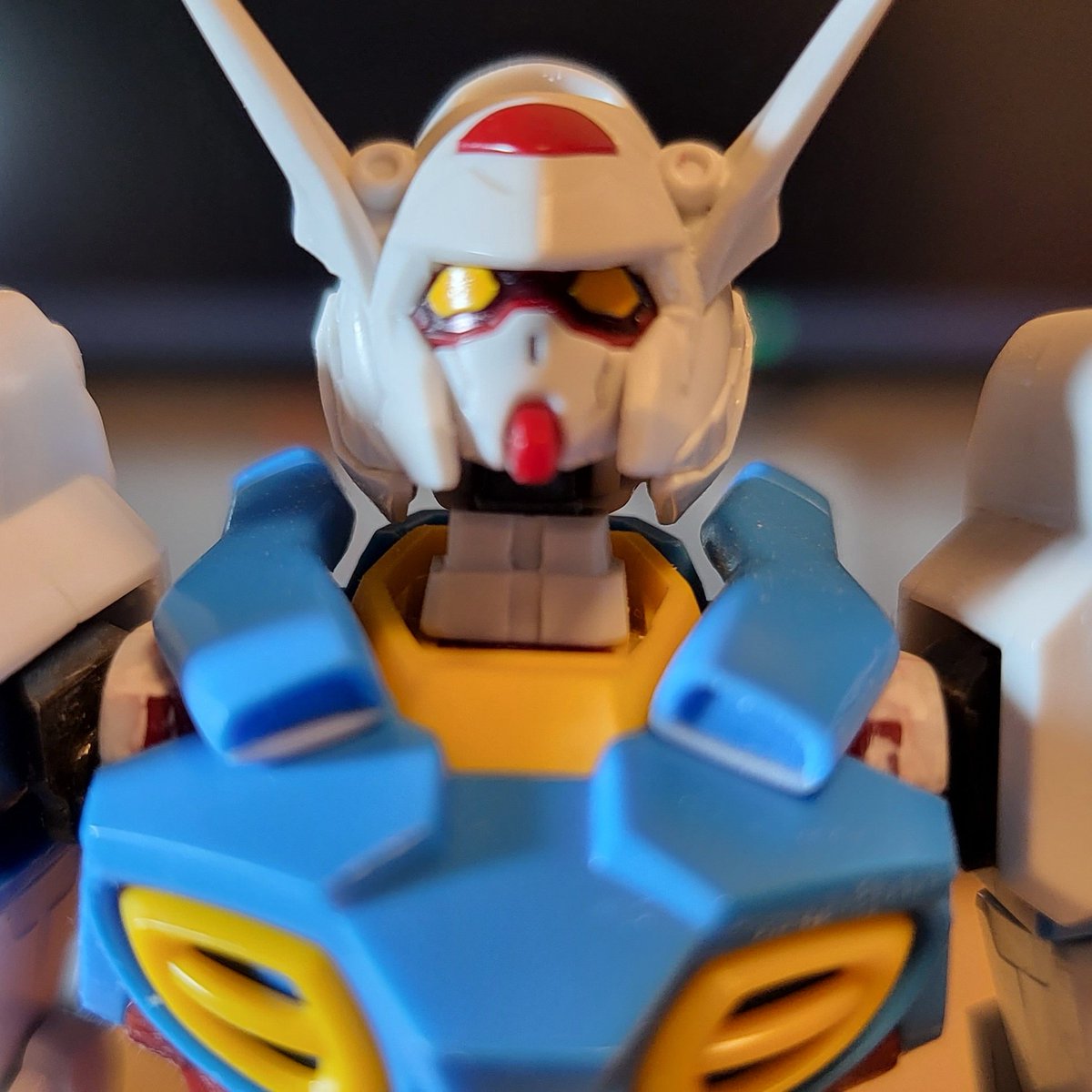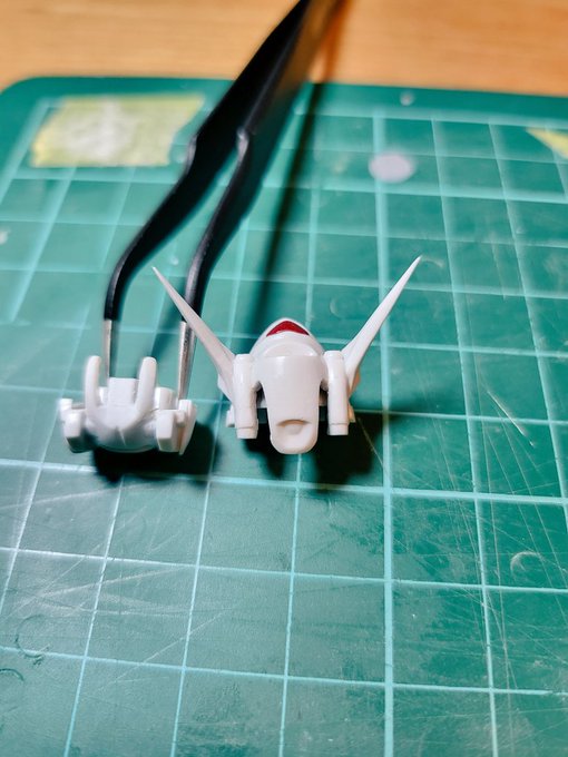 Gセルフ進捗 先人様の知恵をもとに頭部分割ラインの変更。 腰部関節、腿付根、足首軸の三箇所に1ミリプラ版を貼って全高伸ばし。 サーベルラックを正面から見たときに楕円っぽく見えるように整形。 合わせ目消しや穴埋め等緩緩と勧めております #Gセルフ #ガンプラ #ガンプラ好きな人たちと繋がりたい