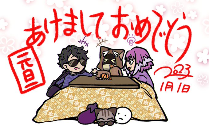 あけましておめでとうございます!!🎍⸜( ᐛ )⸝🐇🎍 2023年もよろしくお願いします( ◜ω◝ ) イラストはコラボの時の紫チーム! #bintrollFA #絵1857 #ぼんさん何してんすか