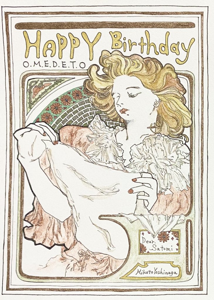 ものすごく遅くなったけれど 楽しみの前日やリラックスの休日に是非💖 🥳Happy birthday 🎉 #art #アート #イラスト #バースデーカード #ミュシャ #ランスの香水 #rodo #ペン画 #ホルベイン #holbein #ファインテックパールセントカラー #finetec #LIVRER #リブレヨコハマ #洗濯洗剤 #spiralmarket