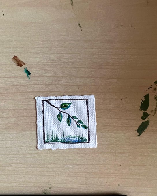 名刺に貼るミニミニ絵画 輪郭と彩色を左手で🖐 本来『絵描きは両利き』 と耳にしてドキッ🫣マジか....。 #高知県 #田舎暮らし #Uターン移住 #art #アート #アートのある暮らし #イラスト #絵描き #ポスター