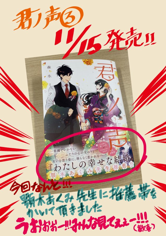 君ノ声4巻、 9/15に発売となります~! ①巻表紙からの二人の構図をぜひ並べて見てほしいです(笑) 特典、可愛くかけたのでどちらも読んで頂けたら嬉しいです! Amazonさん→amazon.co.jp/%E5%90%9B%E3%8… シーモアさん→cmoa.jp/title/206936/ レンタさん→renta.papy.co.jp/renta/sc/frm/i…