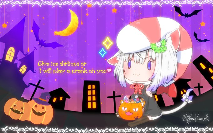 12 29 海老と猫🐈💜🤍 ハロウィンなのでしあちゃんが好きな海老をかぶせてみた☺️✨ &アイデアくれた友達センキュー✨ #猫〆しあーと #Vtuber #ハロウィン 22/10/10 10:09