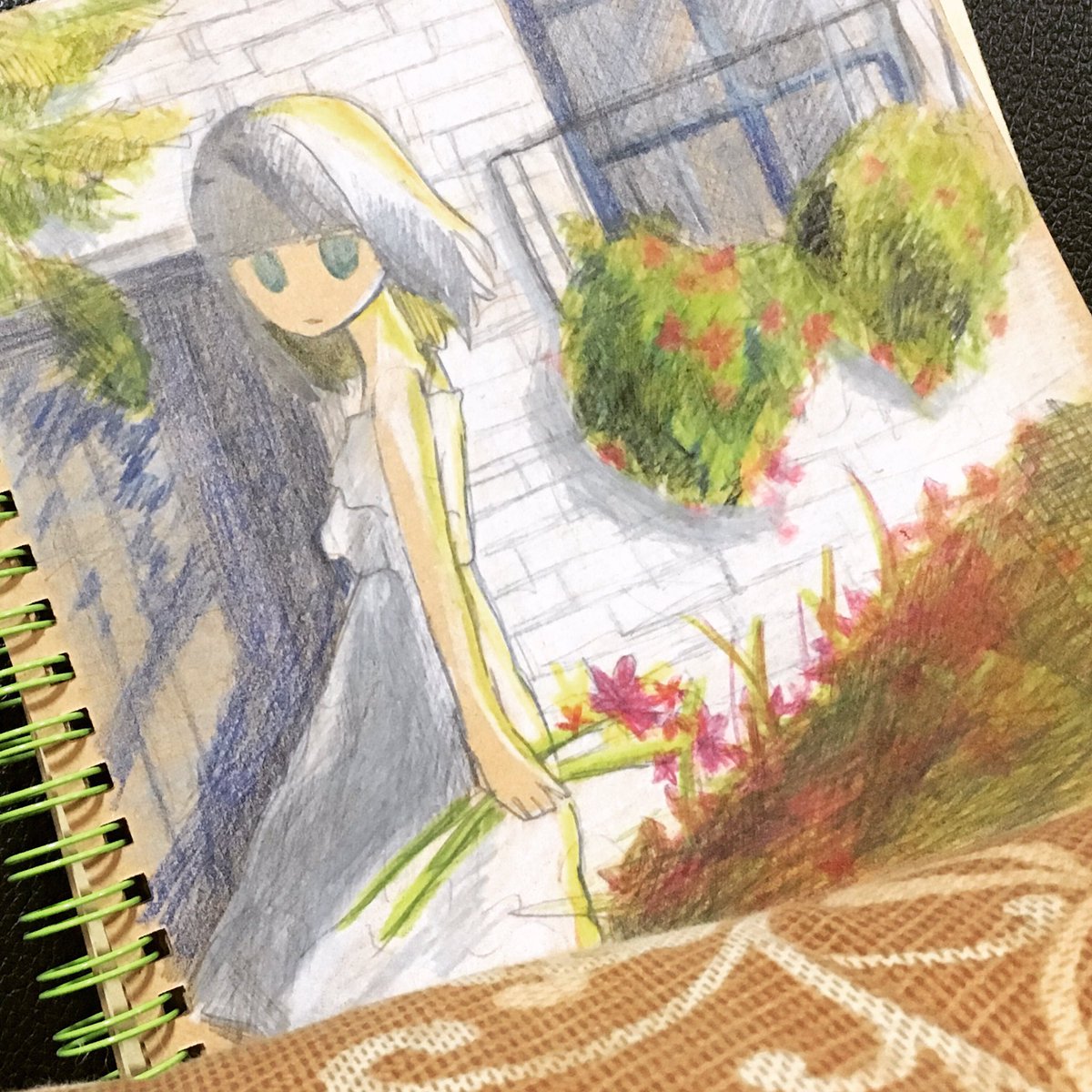 2 20 『花をもらった日』 #イラスト好きな人と繋がりたい #色鉛筆 #私の絵柄が好みって人にフォローされたい 19/08/13 18:07