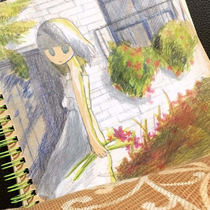 『花をもらった日』 #イラスト好きな人と繋がりたい #色鉛筆 #私の絵柄が好みって人にフォローされたい