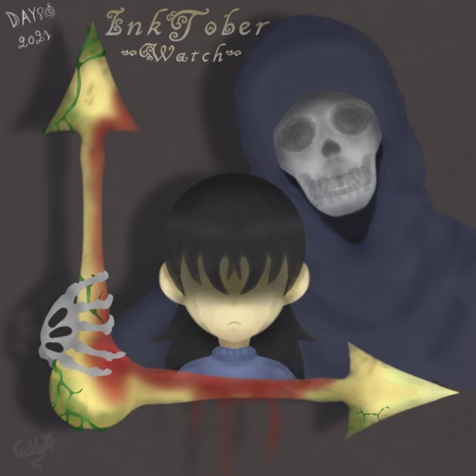 Day 8 ! ^^ 👩🎨Art : By me 🚫Do not Repost my art🚫 ------------------------------------------ I can like this one ! <3 But i can't help myself by feeling that Something is missing... tag : #inktober2021 #inktober #watch #scary #spooky #inktoberwatch #inktoberday8