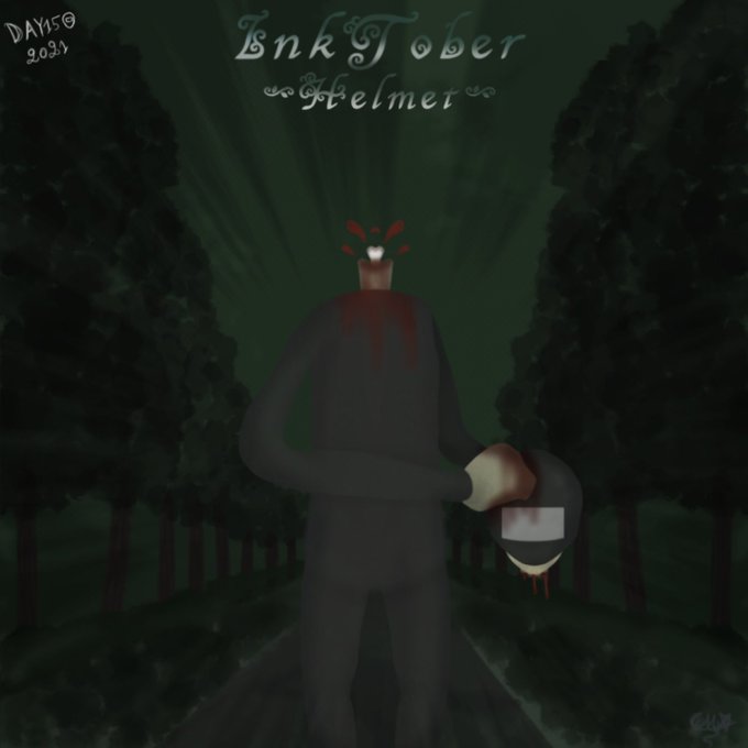 Day 15 ! ^-^ ...can we just Pretend that i never did this one...plz 👩🎨Art : By me 🚫Do not Repost my art🚫 --------------------------------------------- tag : #inktober2021 #inktober #inktoberhelmet #inktoberday15 #spooky #badart