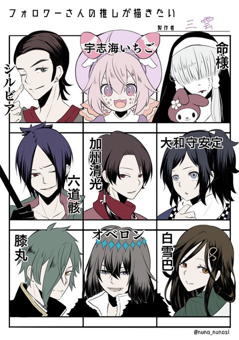 #フォロワーさんの推しが描きたい 覚えていますでしょうか…2月にこのタグの募集に手を挙げてくれたことを……今更ながら描かせてもらいました!!!! ありがとうございました!!!!!7ヶ月も放置してごめんなさいホントに!!!!!!!! ※下段真ん中と右側はあたしが描いてみたかったキャラ