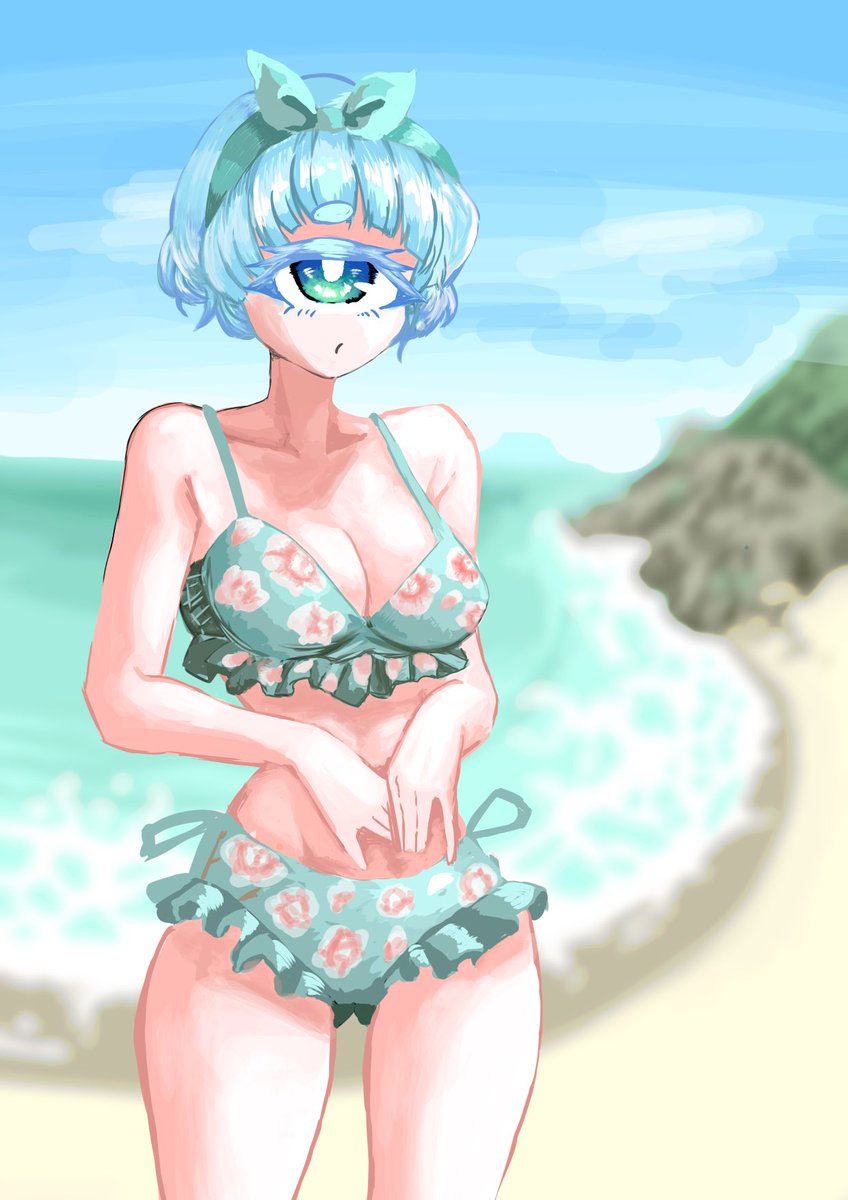 34 102 #単眼 #単眼娘 「ちょちょちょ先輩?! 激かわ水着お披露目はまだですよっ! どこ行くんです?!」 22/09/14 22:30