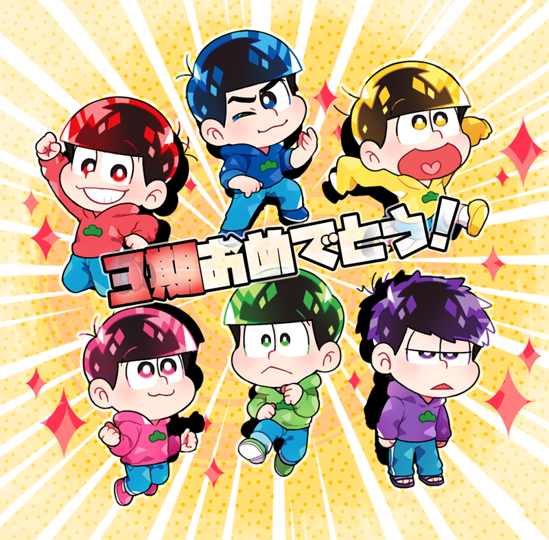 🥳🎉3기씽나!!! 이예이~~!!!❤️💙💚💜💛💗 #おそ松さん3期