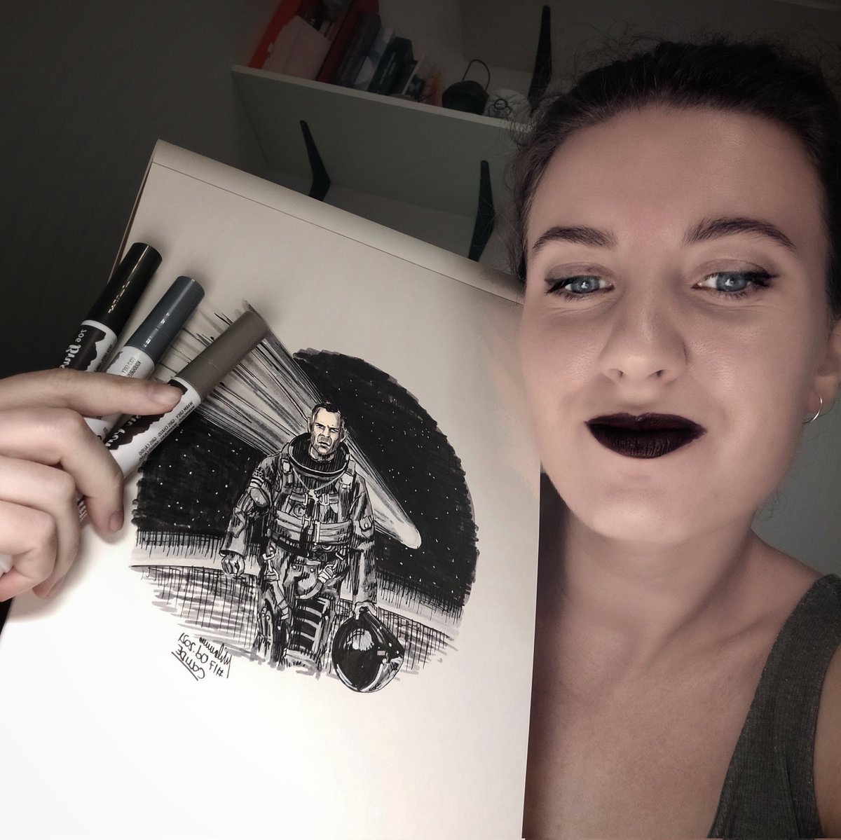 #inktober2021day17 #collide ¿Qué serie/película es? Solución: Collide = Chocar/colisionar = meteorito = Armageddon @inktober #inktober2021collide #inktober2021 #inktober #ink #inkdrawing #inkart #tinta #colision #brucewillis #armageddon #meteorito #nasa #inking #art #arte
